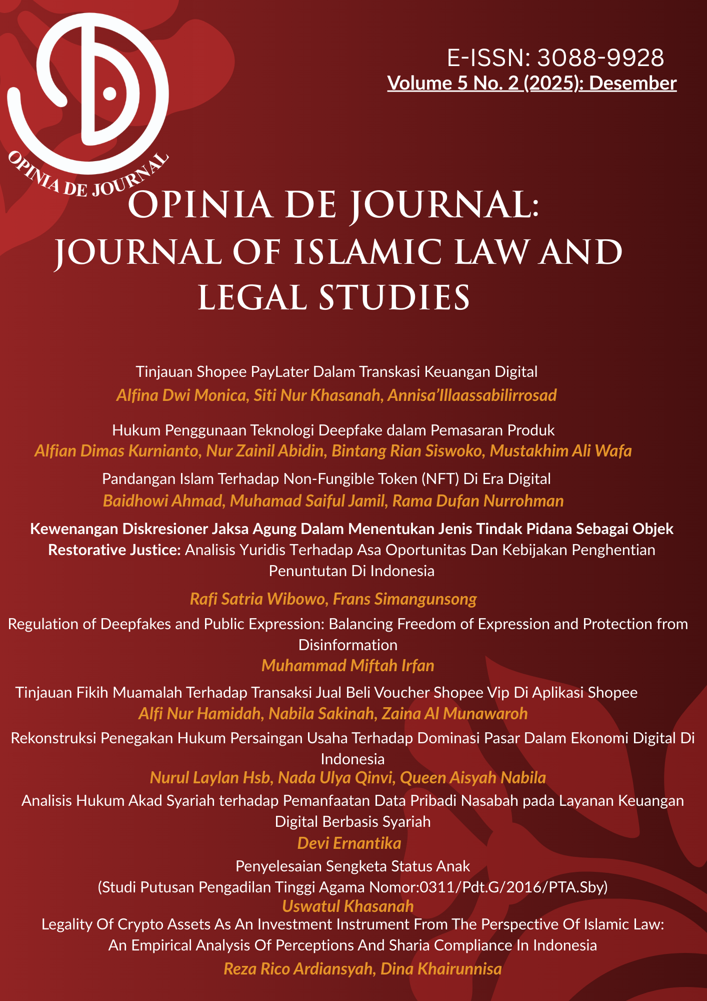 Opinia De Journal: Journal of Islamic Law and Legal Studies
